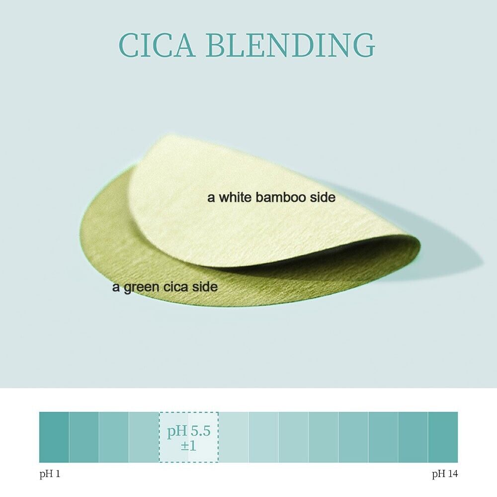 - Diseño de dos caras con un lado de cica y bambú que calma e hidrata la piel.