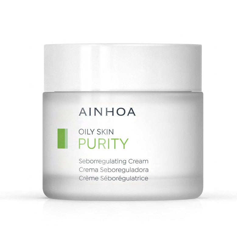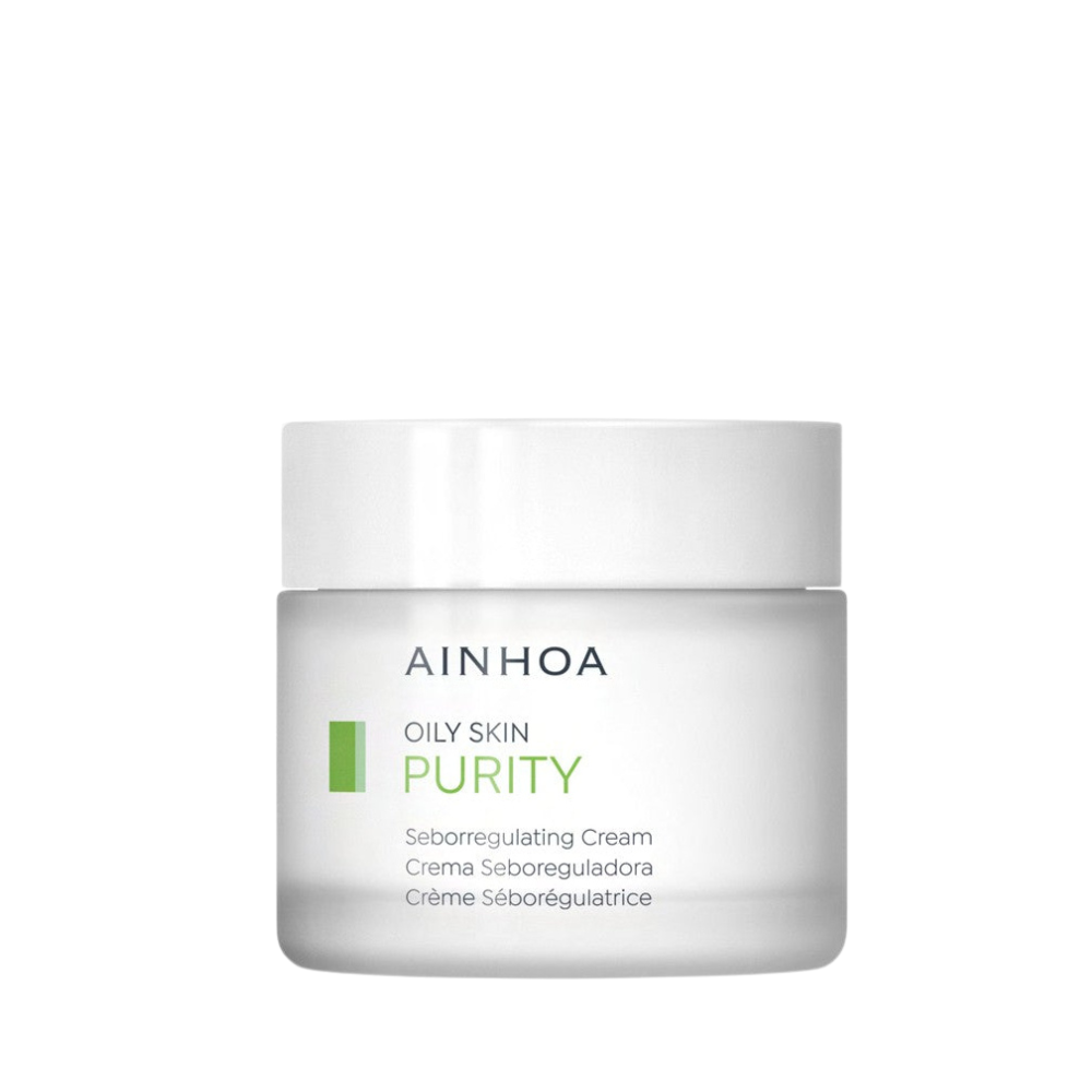 La Crema Seborreguladora de la línea PURITY de AINHOA ayuda a equilibrar el exceso de sebo, reducir visibilidad de poros y purificar la piel gracias a su combinación de extractos de corteza de canela, hamamelis, menta y alantoína. Formulada para dar frescor, limpieza y confort a pieles mixtas o grasas.