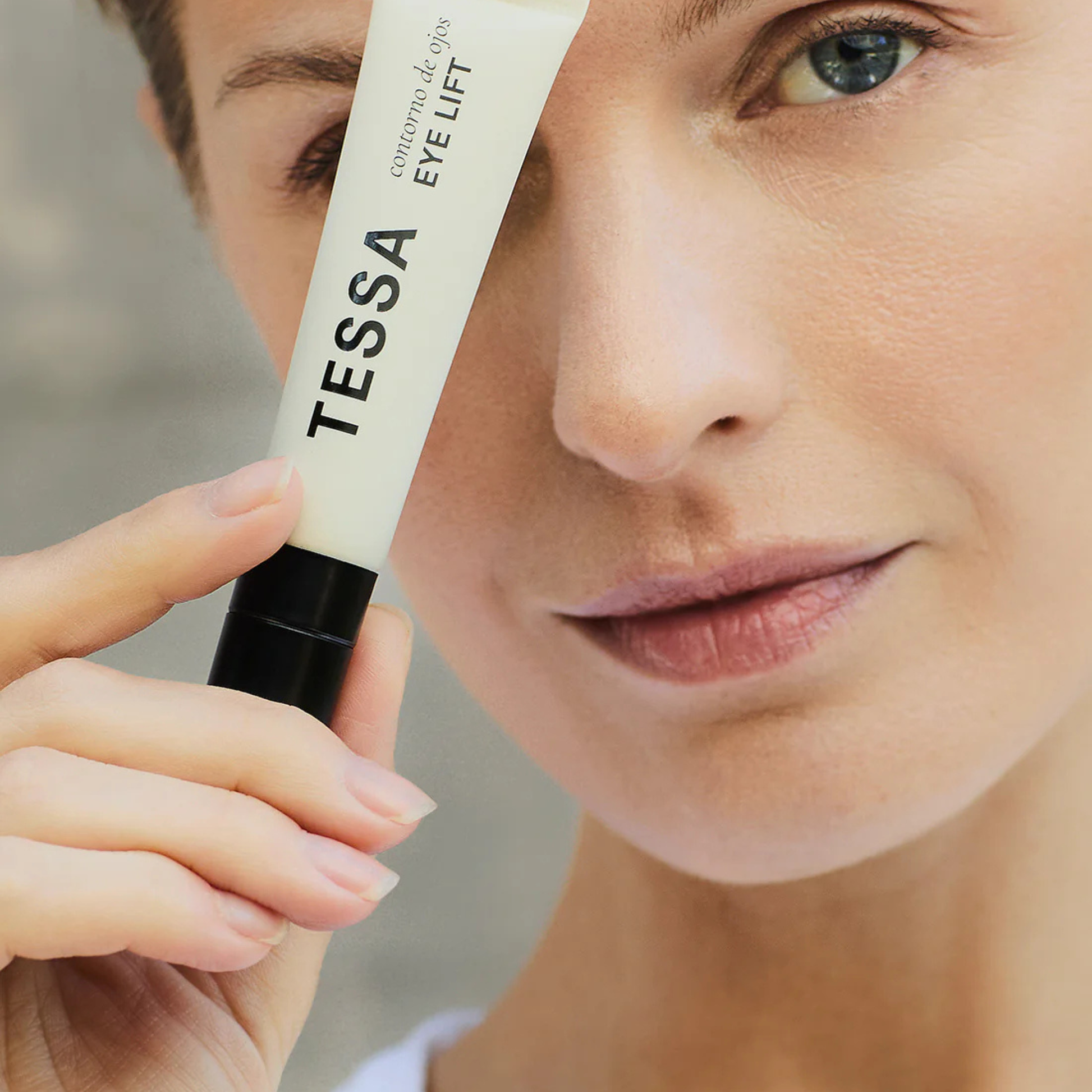 Eye Lift de TESSA es una crema multifuncional para el contorno de ojos, diseñada para tensar y atenuar la apariencia de arrugas, líneas de expresión y ojeras. Su fórmula combina un péptido reafirmante de última generación (SYN®-EYE), células madre vegetales de manzana y el extracto de Selaginella lepidophylla para hidratación prolongada 🌿. Ideal para la zona más delicada del rostro, que necesita acción anti-edad y confort.