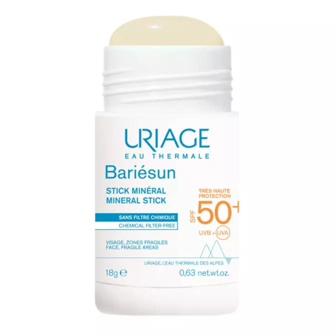 El Bariésun Stick Mineral SPF50+ de Uriage ofrece una cobertura muy alta frente a los rayos UVA/UVB gracias a filtros 100 % minerales. Enriquecido con manteca de karité y vitamina E, protege e hidrata la piel durante la exposición solar intensa 🌿. Su formato compacto permite una aplicación precisa en nariz, pómulos, escote o para retoques durante el día.