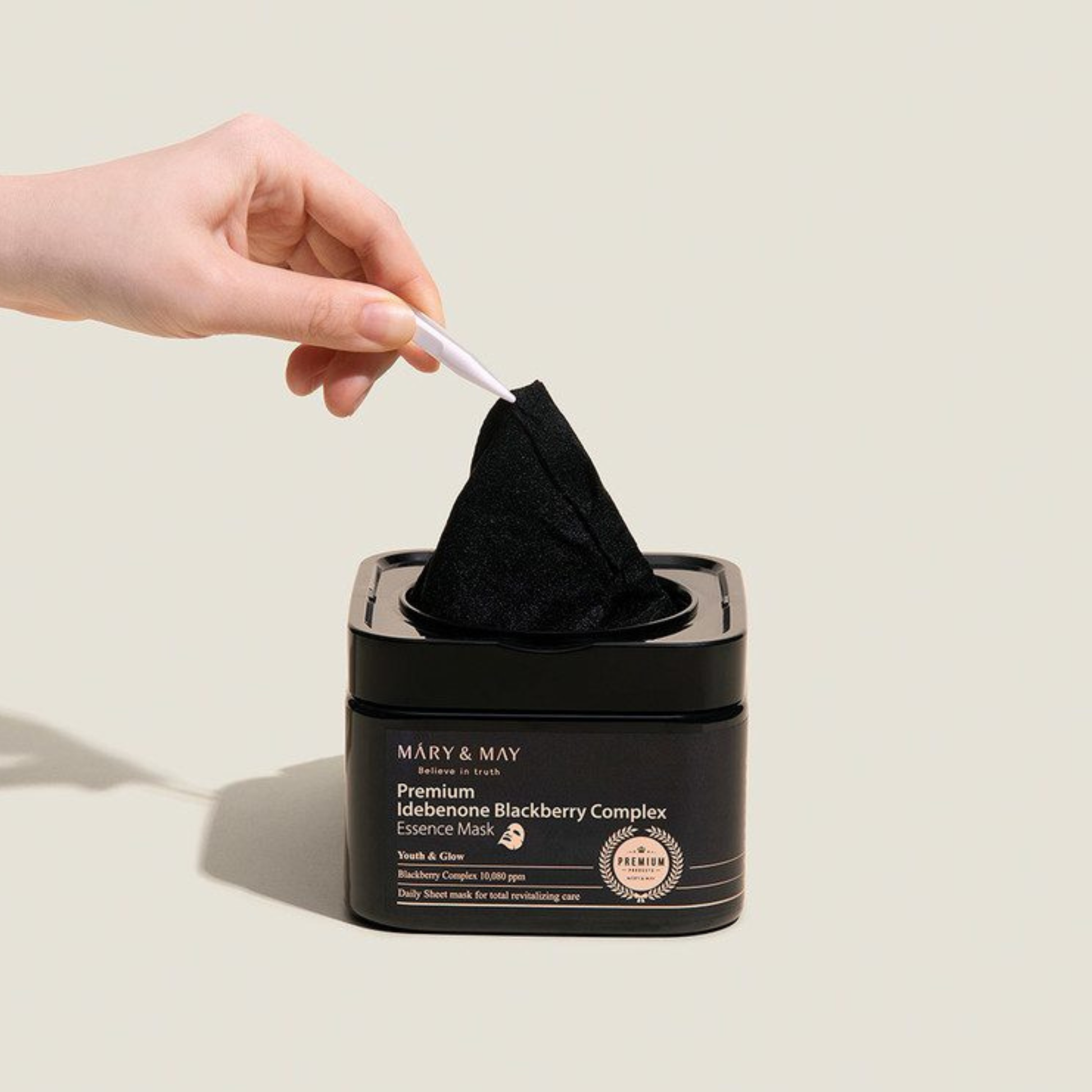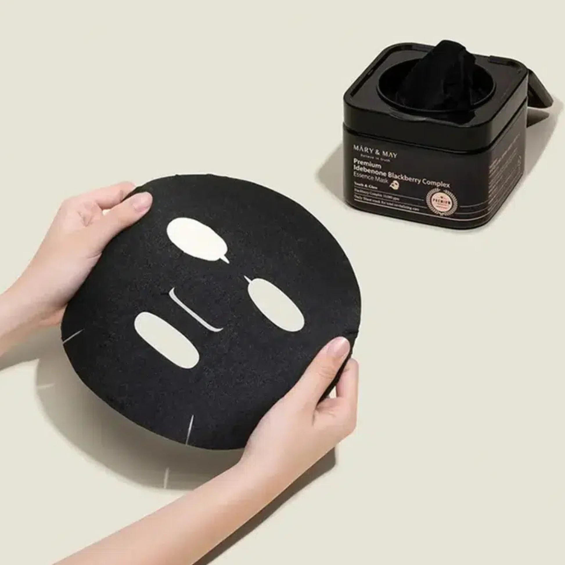 Mascarilla facial en formato sheet mask con idebenona, complejo de mora y ácido hialurónico, diseñada para hidratar profundamente, fortalecer la barrera cutánea, iluminar el tono y combatir signos de fatiga y envejecimiento. Su hoja de fibra de carbón de bambú se adhiere bien al rostro y permite que los ingredientes penetren eficientemente, dejando la piel fresca, suave y revitalizada.