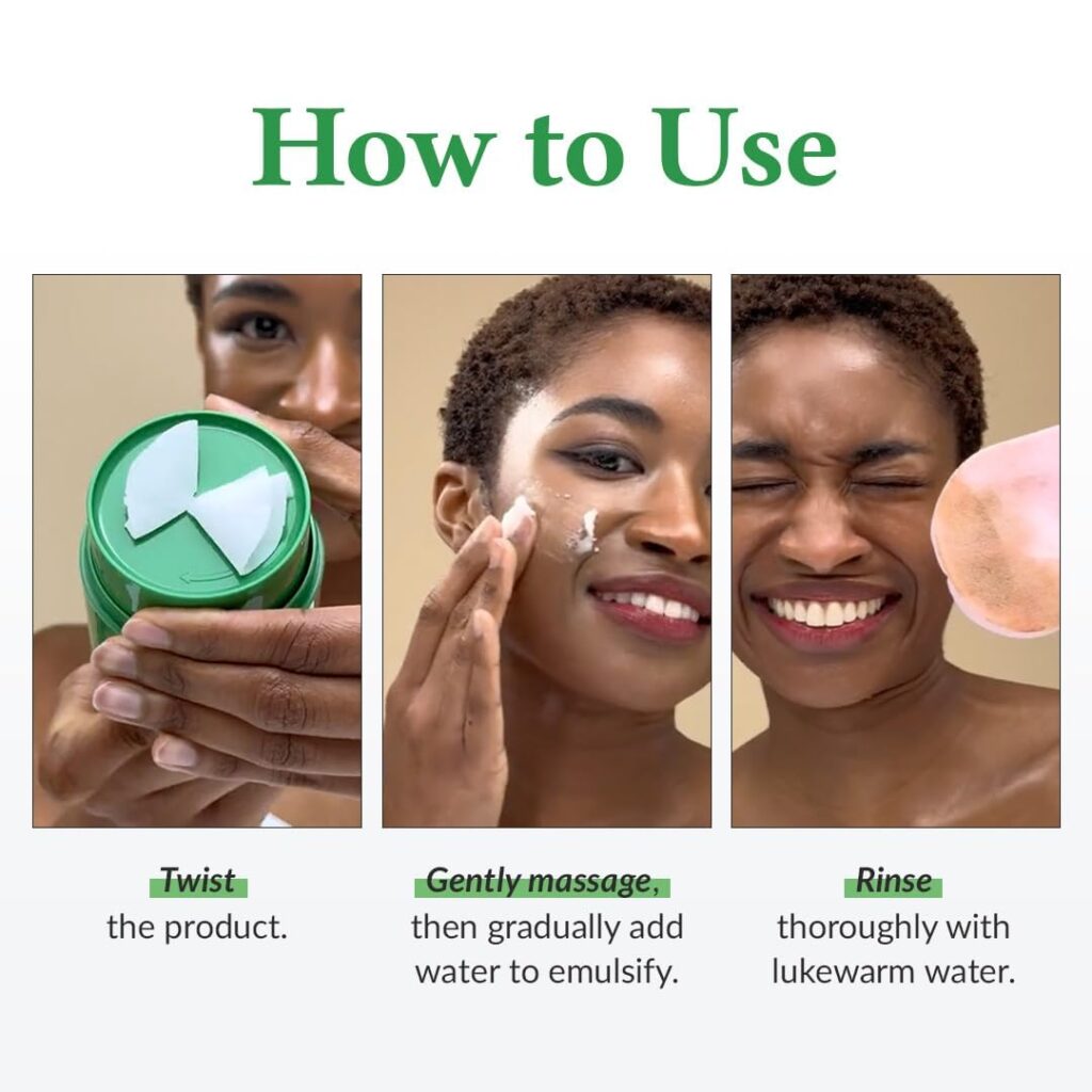 Tomar una pequeña cantidad con la espátula y aplicar sobre el rostro seco. Masajear suavemente en movimientos circulares hasta que el bálsamo se funda y disuelva el maquillaje. Añadir una pequeña cantidad de agua tibia para emulsionar y aclarar completamente. Continuar con un limpiador a base de agua para completar la doble limpieza.
